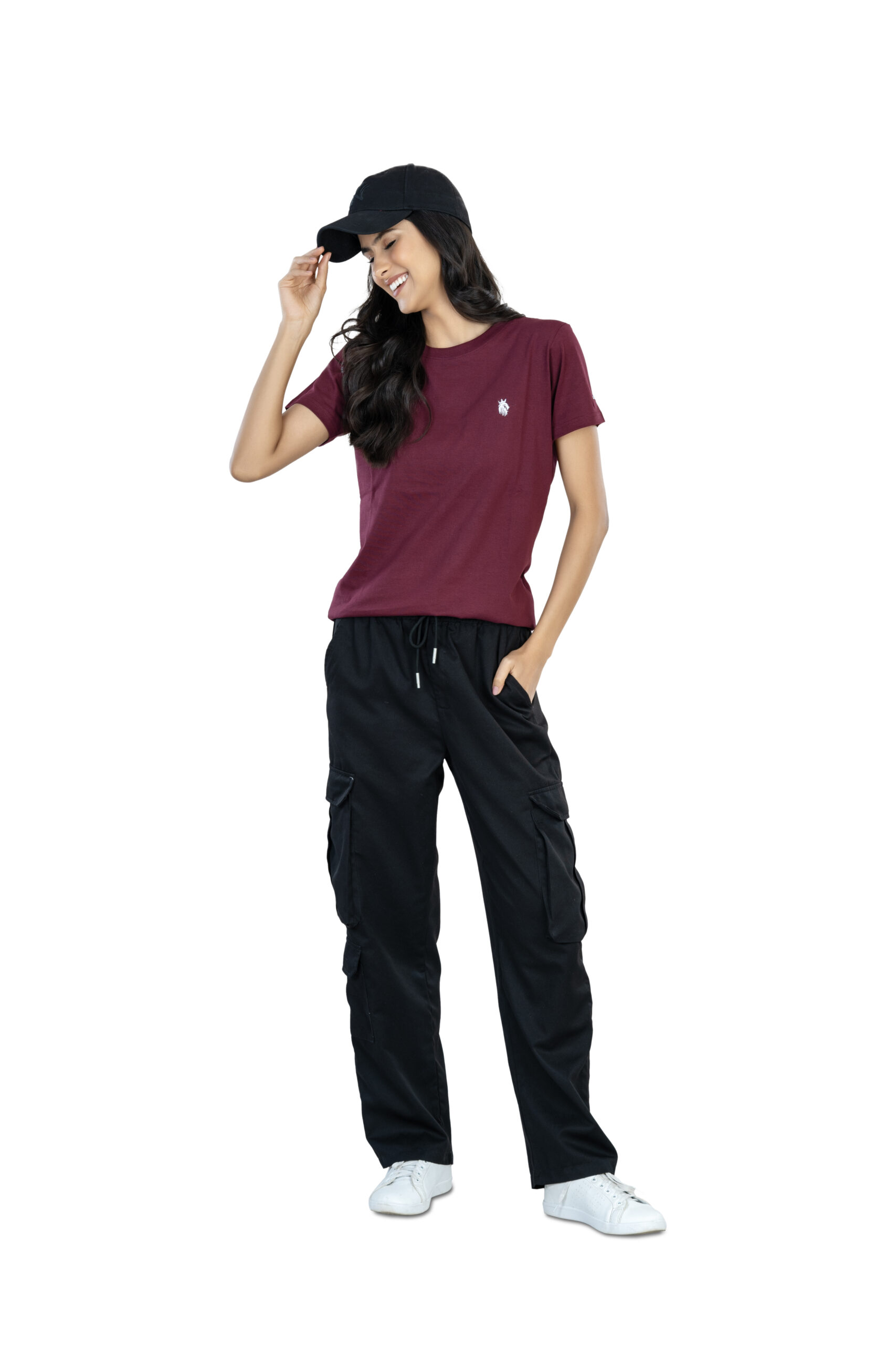 Effortless Elegance Women’s 100% Cotton Round Neck T-Shirt for Casual Chic – Burgundy